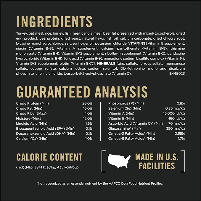 - High protein dog food to help him maintain lean muscles, while the highly digestible formula supports optimal nutrient delivery