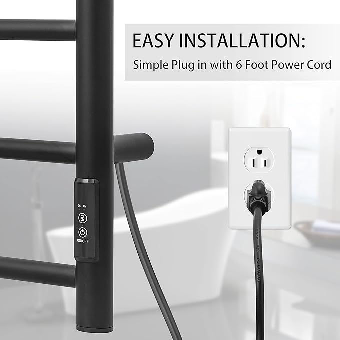 - Premium Quality with Elegant Look: The bath towel warmer is made of durable 304 stainless steel, easy to clean and durable use. IP56 Waterproof standard and wall-mounted design maximizes your floor space.