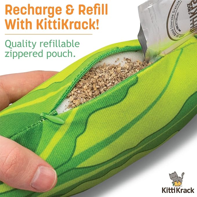 - Refillable Cat Toy: Each KittiVeggi plush cat toy is able to be refilled with TWINCRITTERS KittiKrack Rock refills so your furry friend can keep the fun going! Our silver vine cat and kitten toys are a great compliment to regular cat treats and are purr-fect for playing, teething, and can stand up to the signature "kitty kicking".
