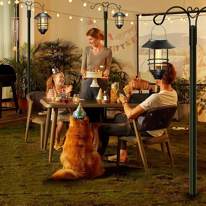 - Versatile and Multipurpose: With its sturdy structure and double-arm design, our outdoor shepherd hook is perfect for hanging solar lights, flower baskets, flower pots, hummingbird feeders, wind chimes, etc., which can be perfectly combined with various outdoor environments.