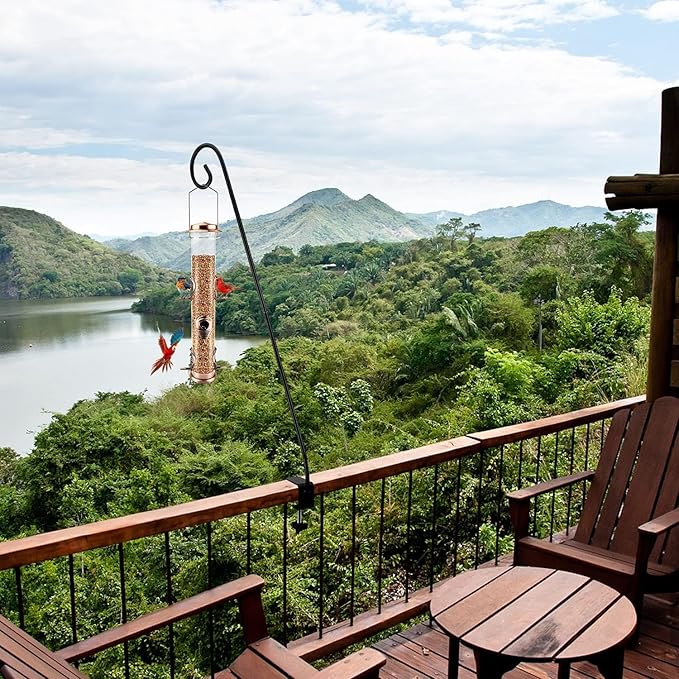 - Deck Hook Smart Design:28-inch bird feeder pole. Things like bird droppings and seeds all fall off the deck, making it easier for you to clean up.