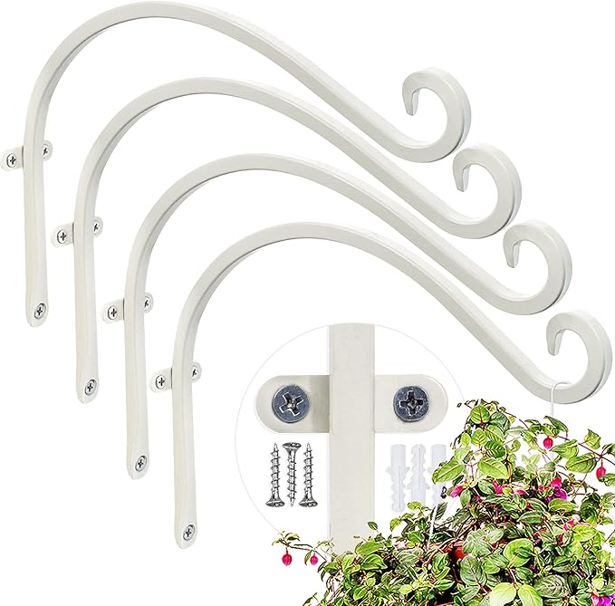 - Plant hooks come in a package of four 12-inch brackets, each measuring 12 inches x 1.5 inches x 8 inches, and include 12 self-tapping screws and 12 expansion screws for quick and convenient use.