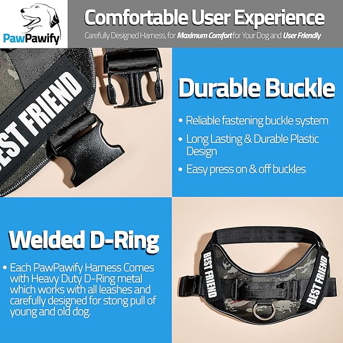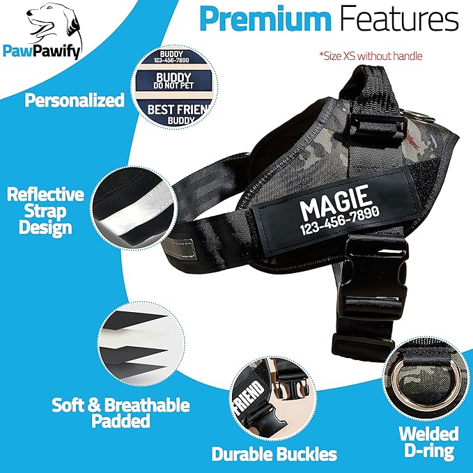 - Personalize two Custom Patches – Each PawPawify heavy duty dog harness also comes with two high-quality patches that can be customized with your dog’s name and your phone number to make it a smart way to protect them if they get off the leash.