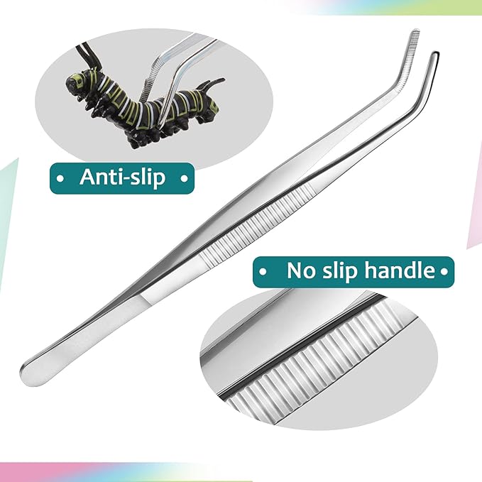 - Feeding tongs: the feeding tong measures 20 cm/ 7.87 inch in length, made of stainless steel, which is sturdy and strong, thickened and hardened with teeth, helps to hold things firmly without slipping