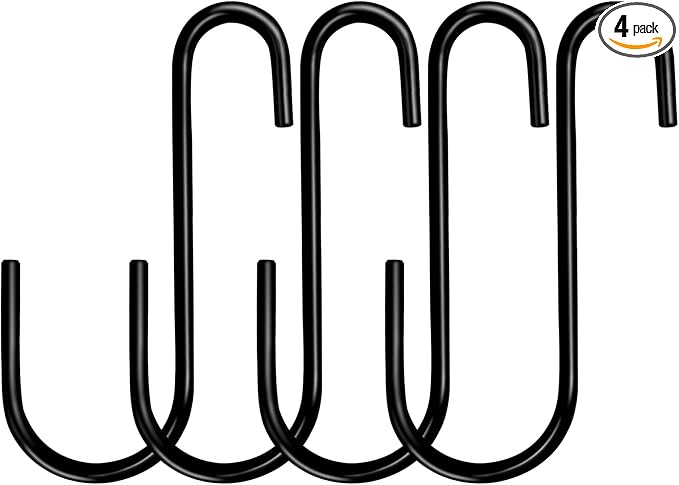 HiGift 6 Inches Large S Hooks Heavy Duty, Black S Shaped Fence Hanger Hooks for Hanging Plants,Wind Chimes,Gardening Tools,Lights,Pool Equipment,Bird Feeder,Bird House,Indoor Outdoor Use - 4 Pack