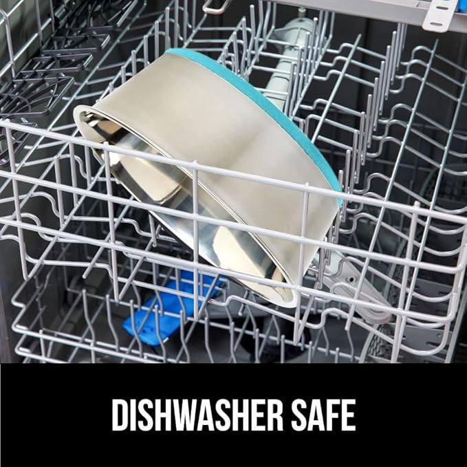 GORILLA GRIP Set of 2 Dog Bowls, Holds 8 Cups (64 fl oz), Heavy Duty Metal Food and Water Bowl for Feeding Dogs and Cats, Dishwasher Safe Rust Resistant Stainless Steel, BPA Free Rubber Base Turquoise