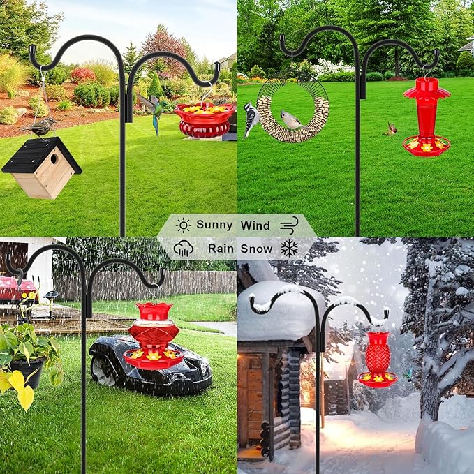 - 【PREMIUM QUALITY】The hollow design and 1.5mm thicker steel make garden hook not easy to bend and deform when encountering strong winds. Powder coated prevents rust effectively and makes it more durable. Retro shape and classic black look of the shepherds hook outside add beauty and elegance to your garden. Simple design make the shepards hooks for outdoor easier to integrate into the garden scene, and can be match with more hanging items.
