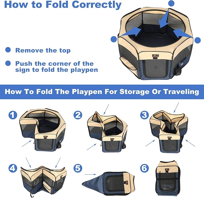 - 『PORTABLE & LIGHTWEIGHT』- The pet playpen can quickly open to use from folded storage bag and fold back flat when not in use in seconds, no assembly required. Portable and lightweight design makes the play pen suitable use for outdoors, indoors, traveling, camping, etc.