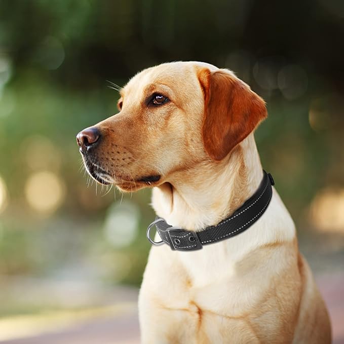 Fida Heavy Duty Dog Collar, Ultra Comfortable Soft Neoprene Padded, Adjustable Reflective Nylon Pet Collar with Durable Metal Belt Buckle for Large Breeds (L, Black)