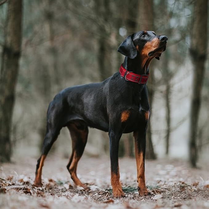 Fida Heavy Duty Dog Collar 1.5” Width, Ultra Soft Neoprene Padded, Adjustable Reflective Nylon Pet Collar with Two Metal Pin Belt Buckle for Large/X-Large Breeds (XL, Red)