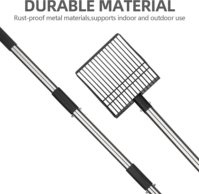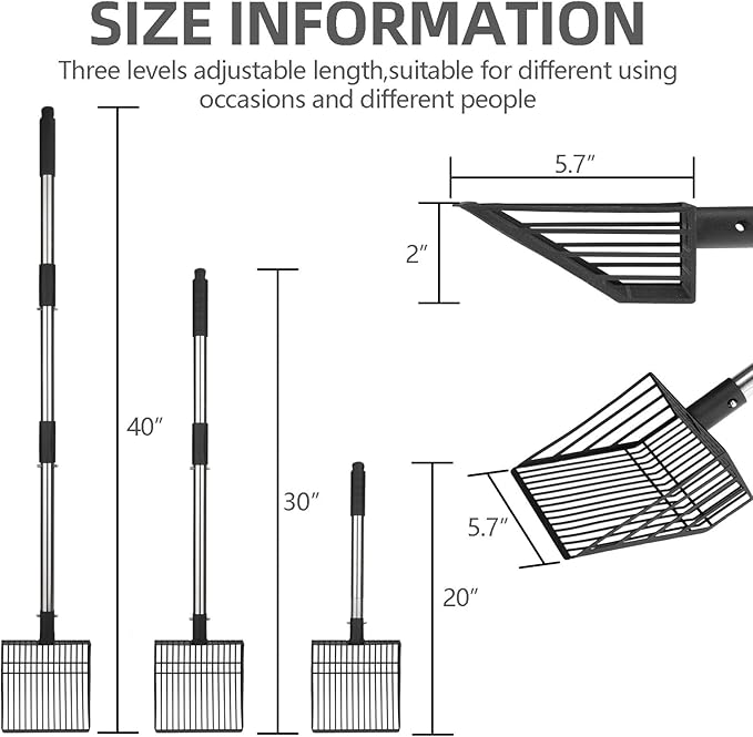 - [3 Levels Length Adjustable]: The handle length can be adjusted from 19.9 inches to 39.8 inches. It can be assembled and disassembled with the press of a button, and the holding handle works very well. Three kinds of lengths can be adjusted to meet the needs of people of different heights. From then on, you donโt need to bend down to serve your cat