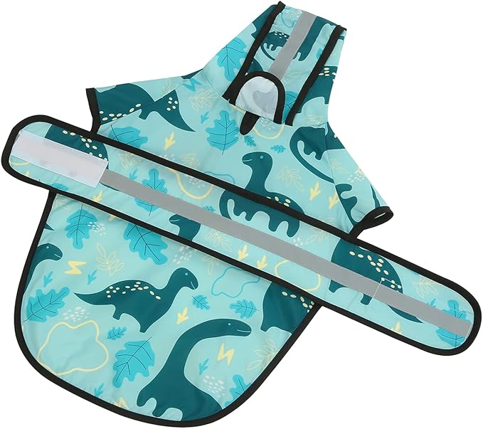 HDE Dog Raincoat Jacket Reflective Adjustable Hooded Pet Poncho Rain Coat with Leash Hole for Small to X-Large Dogs Dinosaurs - S