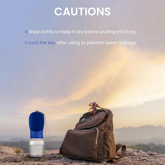 - [Convenient to Carry]: Enough capacity and compact water bottle design is great for your pet dog or cat when outdoor walking, running, hiking, traveling or playing, etc. You can put it into backpack or hang on your hand with sling rope, very easy to carry to anywhere you want.