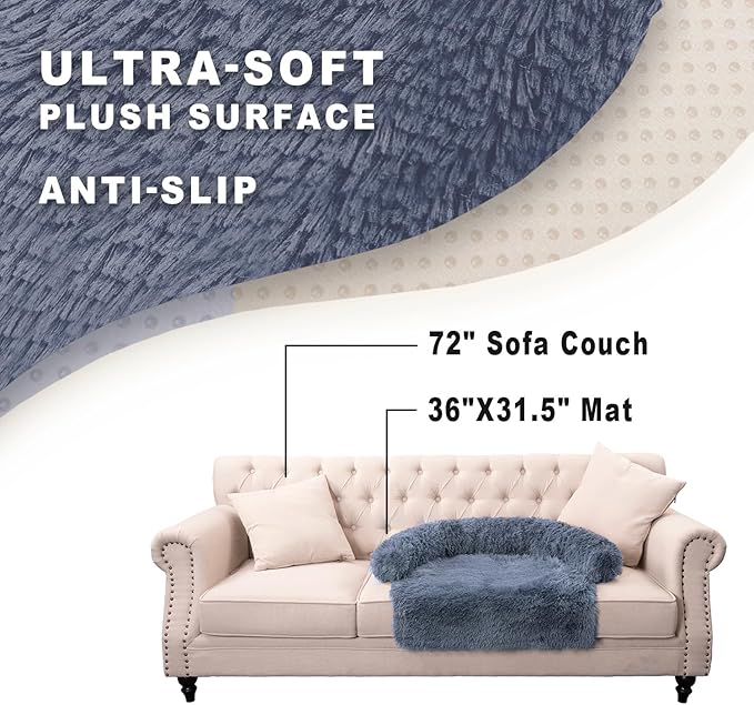 Calming Dogs/Cats Bed Mats, Dog Pad Washable Removable Couch Cover, Plush Long Fur Mat for Pets, Waterproof Lining, Perfect for Small, Medium and Large Dogs and Cats (Navy Blue, 36"x31")