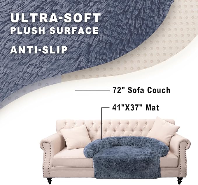 Calming Dogs/Cats Bed Mats, Dog Pad Washable Removable Couch Cover, Plush Long Fur Mat for Pets, Waterproof Lining, Perfect for Small, Medium and Large Dogs and Cats (Navy Blue, 41"x37")
