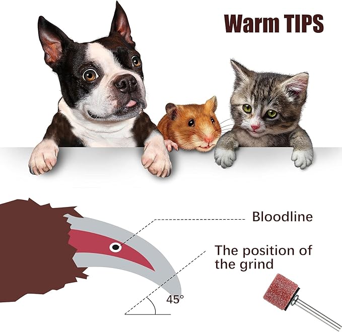 - Easy way to use: can adjust the screw on the top of the mandrel and loosen the grinding drum; Then need to make sure that the grinding drum is firmly fixed on the mandrel before using; Next, can slide the grinding wheel into the drum sander, and tighten the drum; Finally, can directly start to groom your pet's nails