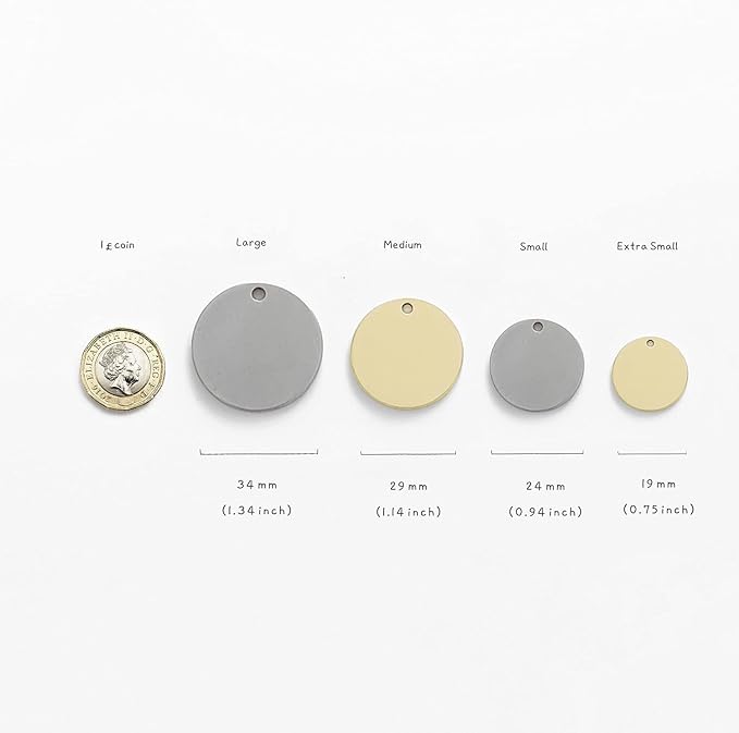 - ✎ Material And Size Guide ✎ ✦ Brass is copper real, shiny brass use hand-polished and 14K gold surface plated. ✦ 316L stainless steel, more reassuring. ✦ Industrial steel as a timeless memorial badge, super hard and deep engraved. ✦ Laser engraved and hand-polished, clear, permanent and attractive.