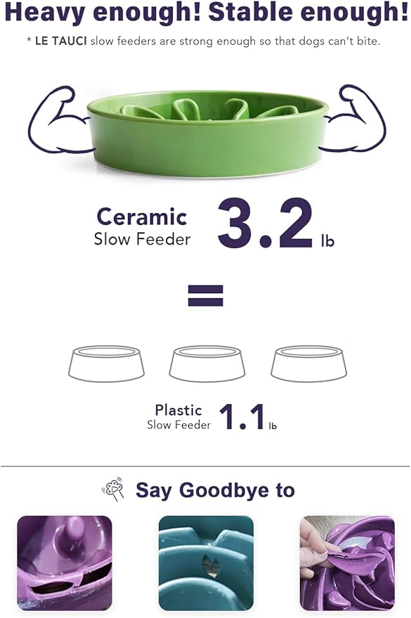 - Premium Ceramic, Durable and Stable: We use premium ceramic, not easy to damage, and it is sturdy and heavy enough to be more stable. However, if your dog is using a slow feeder bowl for the first time, we recommend starting with a silicone bowl to help them get used to it.