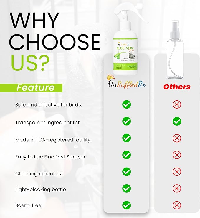 Aloe Vera Bird Spray for All Birds – Soothes Itchy Skin & Feather Plucking – 8oz Odor-Free Mist, Safe if Ingested, Daily Use Bird Mist, Softens Feathers, Natural Formula – Made in USA by UnRuffledRx™