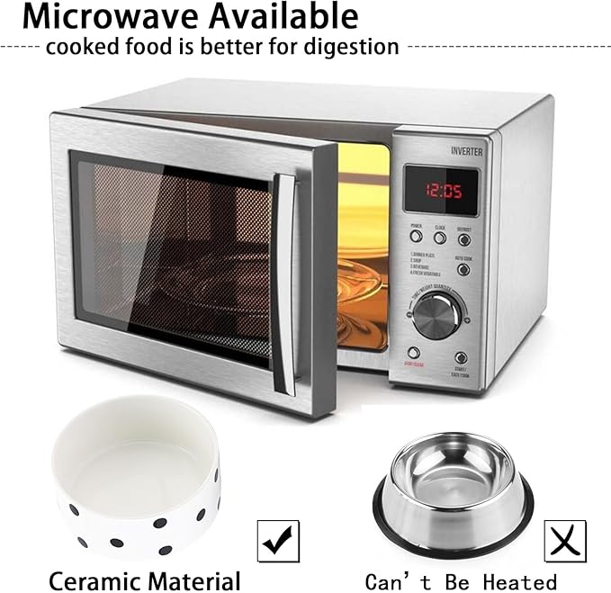 - Easy to Clean and Microwave Safe Ceramic Material - Cute dogs cats bowl with WOOD STAND Easy to Clean and Microwave Safe Ceramic Material - Cute dogs cats bowl with WOOD STAND design matches the home decorations. Ceramic bowl is made of Porcelain, this cat dog food water bowls are free of lead and cadmium. High temperature ceramic, no smell,durable.conveniently dishwasher Microwave safe so this ceramic food bowl can be easily cleaned. No Fuss.