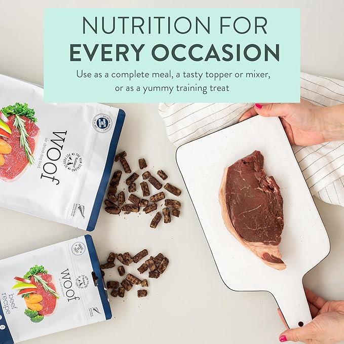 The New Zealand Natural Pet Food Co WOOF Air Dried Dog Bites - Beef Recipe, Air Dried Dog Food, High Protein Beef Food, Healthy Dog Food, 26.5 oz