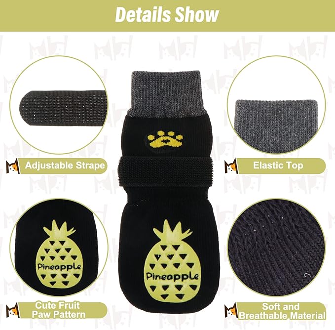 - Durable Material: Made of elastic and comfortable material, which keeps your dog safe and relaxed. The soft and breathable fabric makes these socks protect the dog’s paws from being burned in the hot summer and prevent dog claws from stones and glass. Cute fruit pattern even makes your dog look charming.