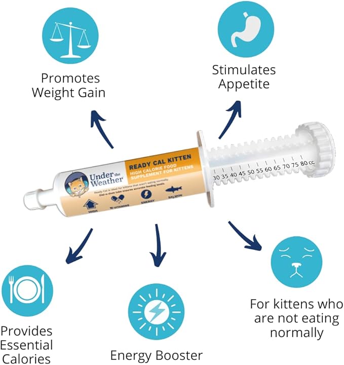 Under the Weather Pet | Ready Cal for Kitten | High Calorie Pet Nutritional Supplement for Weight Gain & Healthy Weight Maintenance | 10 Vitamins, 7 Minerals, Omega Fatty Acids & Carbohydrates | 80cc