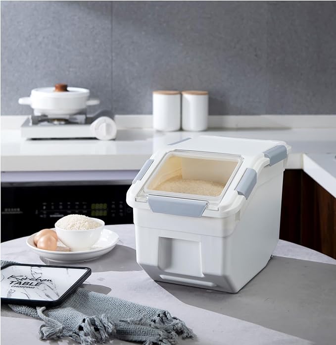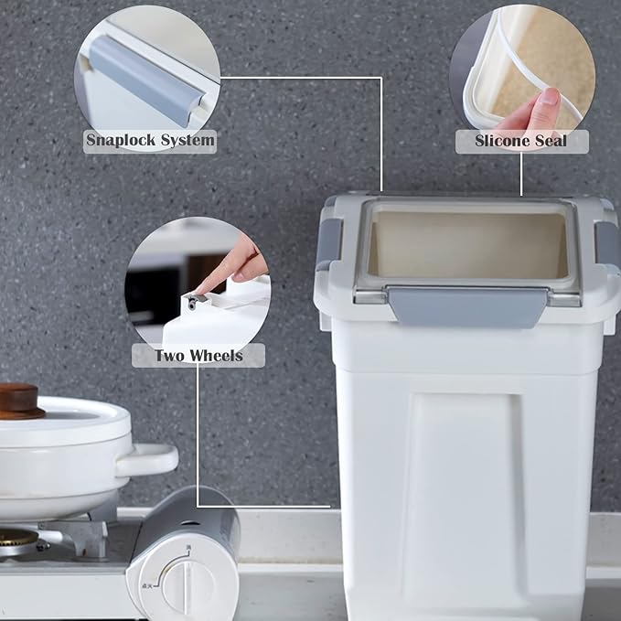 - Airtight Silicone Sealed Cover with one Flip Lid and 6 Locks: Keep rice, flour, corn, beans, or pet dry food fresh and healthy. It's moisture-proof, dust-proof, not leak-proof.