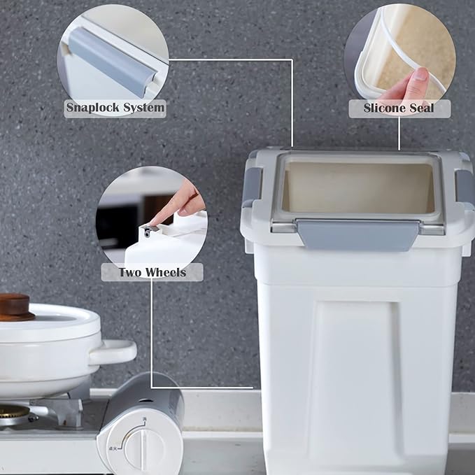 - Airtight Silicone Sealed Cover with one Flip Lid and 6 Locks: Keep rice, flour, corn, beans, or pet dry food fresh and healthy. It's moisture-proof, dust-proof, not leak-proof.