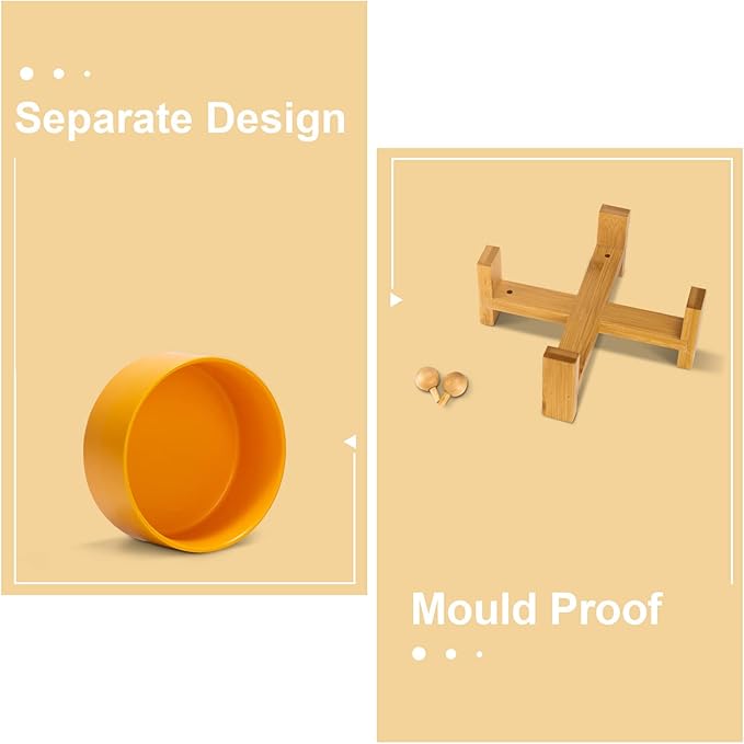 - CERAMIC MATERIAL: SPUNKYJUNKY Tilted Dog Bowl Set uses high temperature fired safe ceramics with a heightened wooden stand to provide a healthy feeding environment for your pet