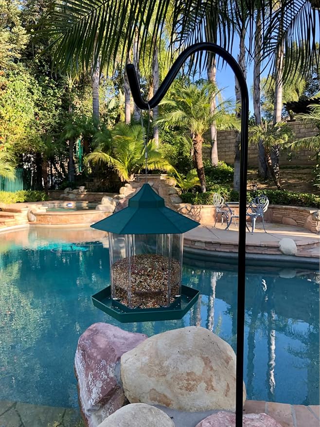 - MULTIFUNCTIONAL USE: Our heavy duty shepherd hook is widely used for garden hanging item like birdfeeder, mason and flower pots, solar lights, lanterns, candlesticks, garden lights, string lights, flower balls, bird baths, shooting targets, lamp posts, plant gifts basket, humming wind chimes, also can decorate Christmas tapestries, Halloween ghost lights and jack-o-lanterns, etc.Be good ideal for garden and outdoor weddings, parties and a variety of holiday decoration to add charm to your yard.