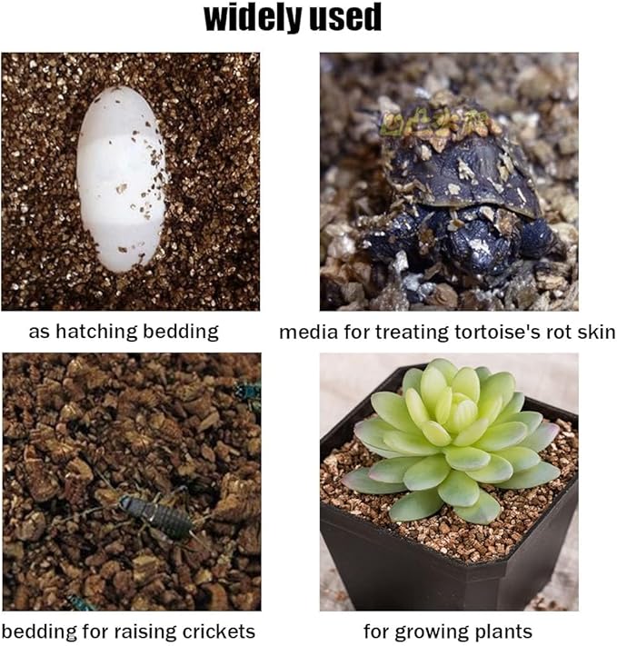 - HIGH-QUALITY INCUBATION BEDDING:The reptile vermiculite bedding has strong water absorption, good moisturizing and heat preservation performance, and good air permeability. It is a very high-quality egg hatching bedding material.