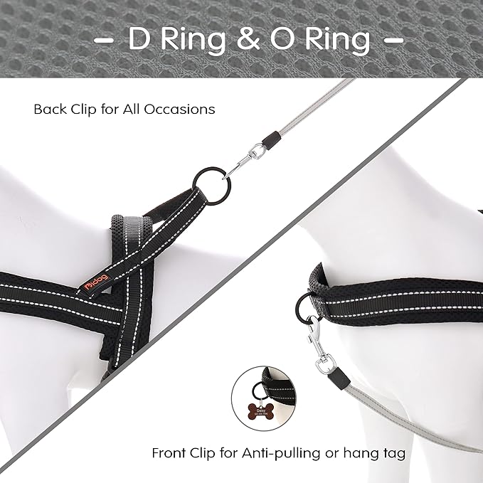 - Comfortable Wearing & Safety Walking - There are soft mesh pads beneath the straps for dog neck and back, pads are wider than straps to make sure dog comfortable feel for each pulling; 2 reflective lines along each strap is helpful to keep your dog safe for night walking;