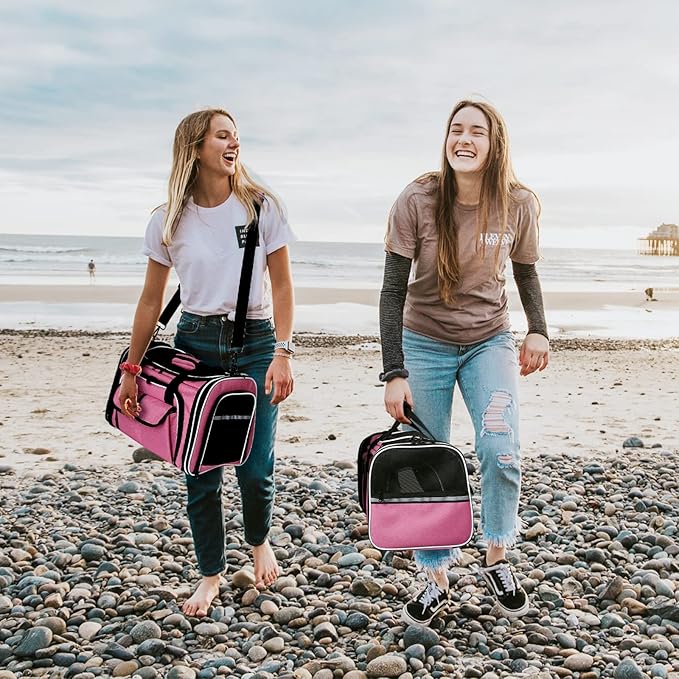 - πΎCOLLAPSIBLE & AIRLINE APPROVED: Soft sides of the travel pet carrier can be slightly collapsed to comply with the under-seat compartment requirements of most airlines, great for traveling by air with pets. Designed with a wider rear strap to attach to your luggage for convenience.