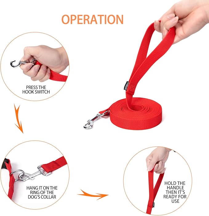 - Size:This Dog leash length: 15 feet. Widen: 1 inch。made of soft strong nylon fabric. 1inch wide to add durability.