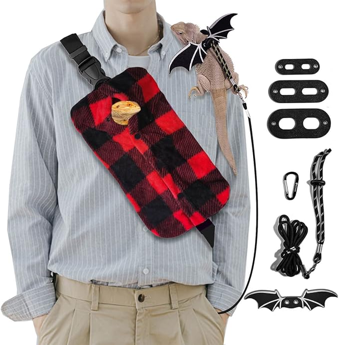 - ★EASY ADJUSTABLE TO USE: The length of the reptile sling carrier strap is adjustable to suit your needs, allowing you to comfortably wear the bearded dragon travel carrier. It fits most adults and children. The reptile leash is 5ft in length, and we offer three different sizes to accommodate various reptile body types. It can be easily changed and adjusted as needed, making it suitable for bearded dragons, Chinese water dragons, geckos, chameleons, iguanas, hamsters, chinchillas, and more.