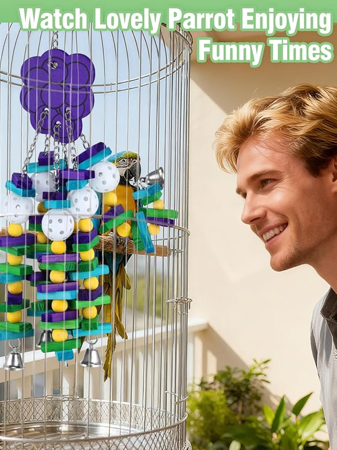 - Great Gifts: The large bird parrot toy is very easy to attract the attention of parrots. The combination of multi-column wood blocks can meet their climbing and biting needs, keep them busy, increase interest and reduce damage to household items. You can also gift it to your parrot-owning friend.