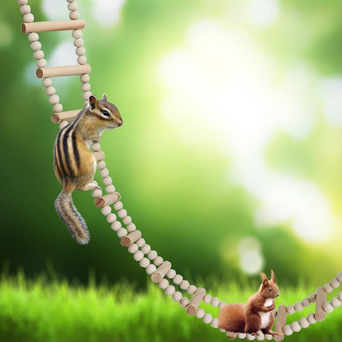 - 🦜【Climbing and Swing Toys for Small animals】: The hanging rope ladder bridge allows the bird and hamsters or other animals to play and jump on the stairs, exercise their balance ability, and enrich their activities and content. This ladder bridge climbing toy is widely suitable for all kinds of birds, hamsters, mice, rats, gliders, ferrets, guinea pigs, lemmings, chicks, gerbils and other small animals cag decoration and play.