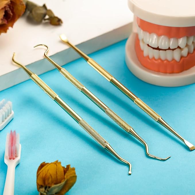 Hotop 3 Pieces Dog Dental Tooth Scaler and Scraper Stainless Double Headed Tarter Removing Tool Scraper Pet Teeth Cleaning Tools for Dog and Cat(Gold)
