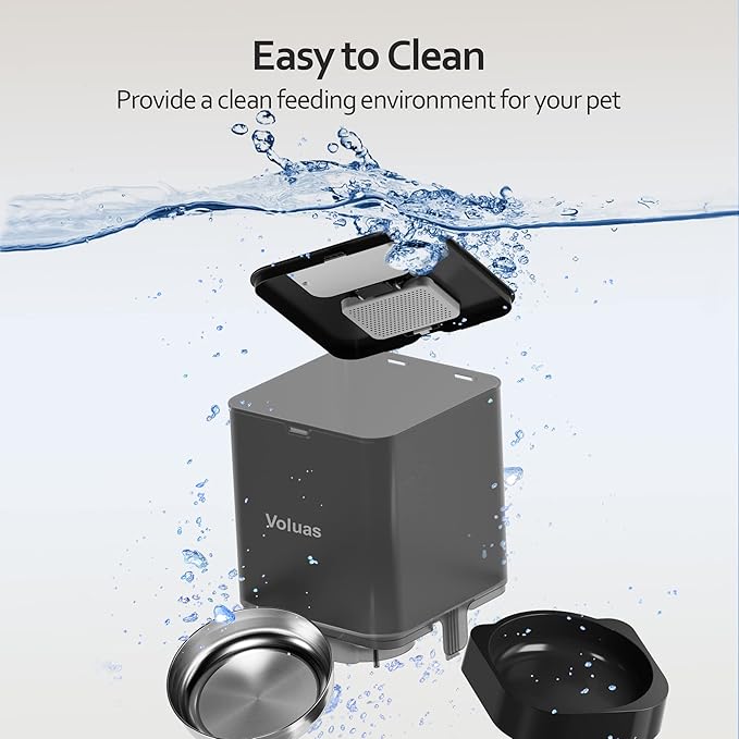 - User Friendly Operation: Intuitive LCD screen makes setup and programming a breeze; Removable cleanable parts foster a healthy environment for your pet’s food; Included Desiccant bag helps maintain the freshness of the cat food, keeping it crunchy for biting