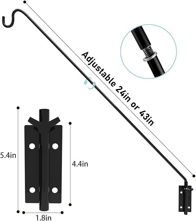- Premium Quality: Heavy duty steel construction and rust resistant. Weather proof black powder coated. A dark finish stunningly complements anything that hangs from it, adding elegance and beauty to your outdoor living space. Solid bracket and curved rod tip helps securely hold items.
