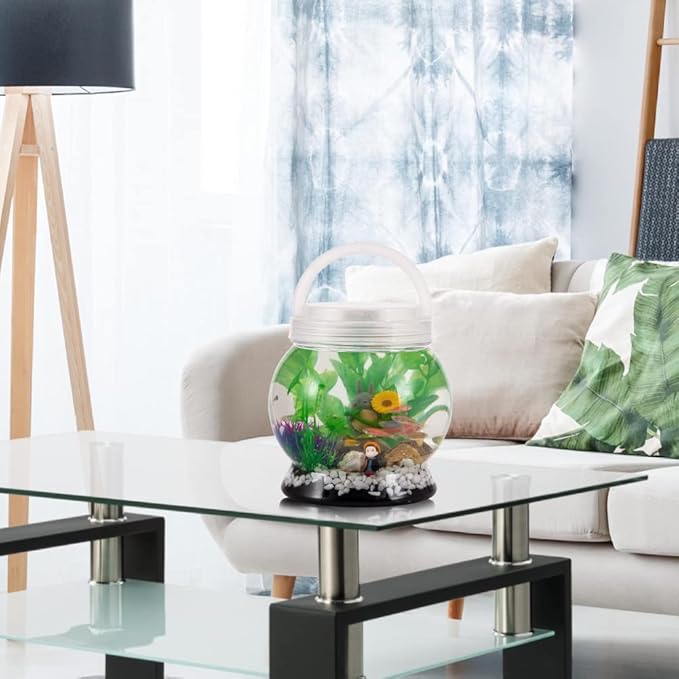 - COMPACT&LIGHTWEIGHT:The size of the small fish tank is 5.9*5.9*6.1 inches,It can hold 0.5 gallon of water,which more compact size and more save space no matter where you put it.