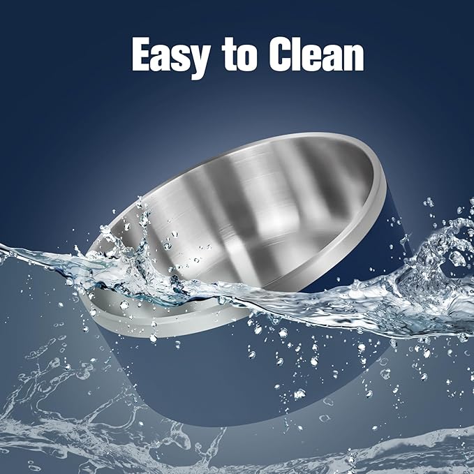 - KEPP WATER COLD LONGER-Dog bowls large sized dog are vacuum formed,stainless steel design provides a thermal break.The stainless steel material can keep water cooling longer.Our pet bowls for dogs for thirsty dogs features premium stainless steel to create an extra large,weather resistant dog dish.Our large dog food bowl can match any décor.