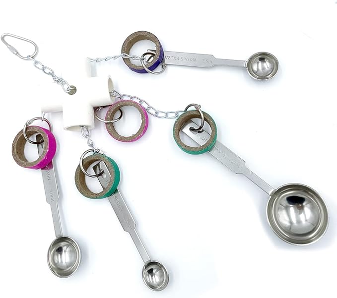 Durable Bird Parrots Scoops and Bagel Toys, Pullable Stainless Steel Spoon and Cardboard Ring Toys for Small and Medium Bird Parakeets, Cockatiels, Conures, Budgie, Lovebirds, Finches