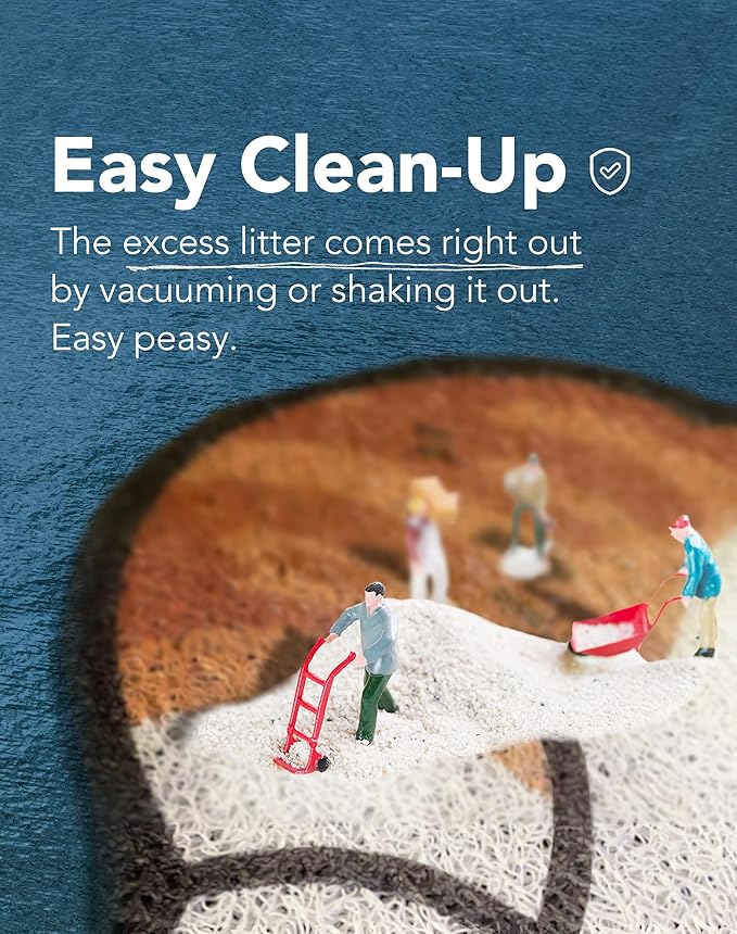 - ✨ Easy Clean-Up: You can clean Lukamoo’s litter mat by vacuuming or shaking it. The excess litter comes right out. Easy peasy.