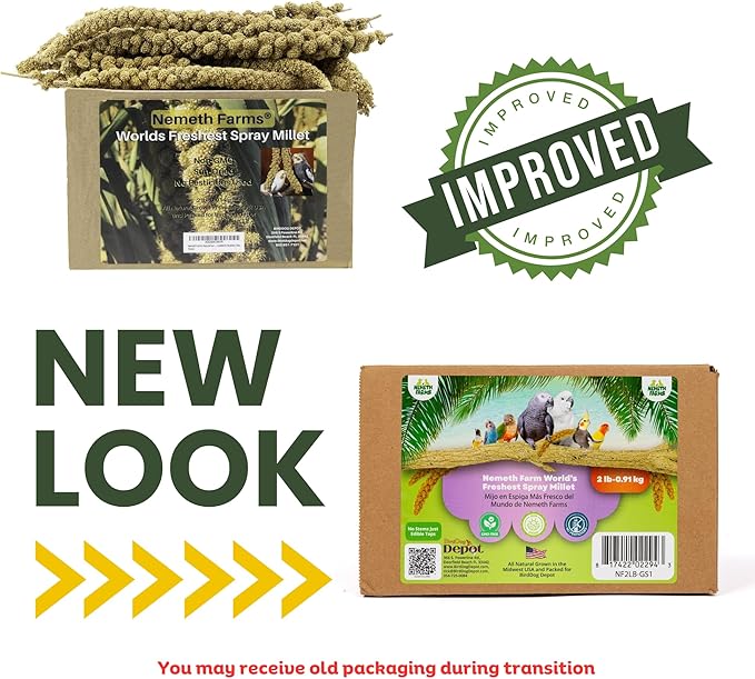 Nemeth Farms–Natural Sun Dried Millet Spray for Pet Birds–Bulk Parrot Seed Treats and Parrot Food–Natural Non GMO Millet Spray–Cockatiels Lovebirds Parakeet 2 lbs.
