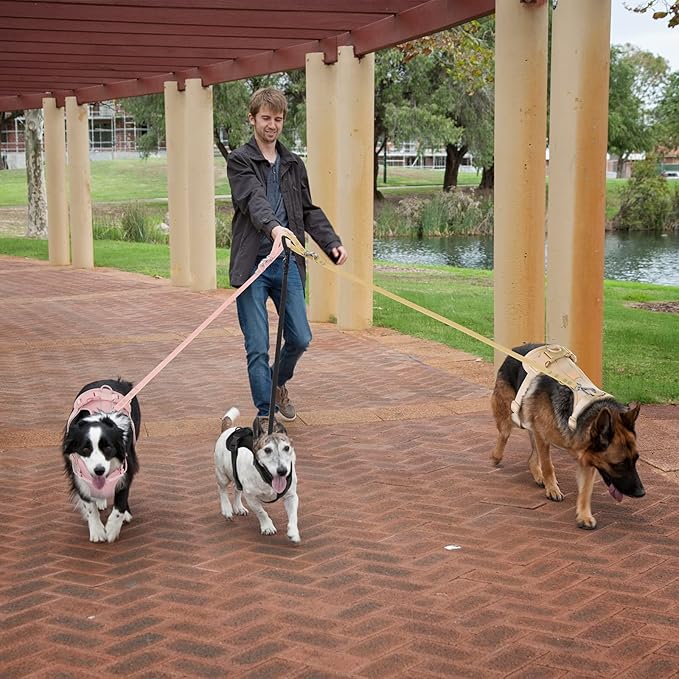 - 【Adjustable Nylon Webbing】Both the neck and chest webbing can be freely adjusted to suit pets of different body sizes. The design of three traction rope interfaces supports flexible switching multiple traction modes.