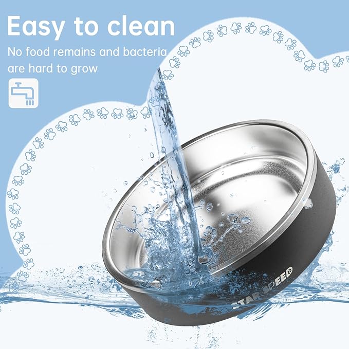 - 【Non-slip and No spill】 StarSpeed dog water bowls are weighted dog bowls with non-slip rubber rings. These designs prevent dog bowls from slipping and food and water spills. This feature is especially beneficial when using it as a dog food bowl or a large dog bowl