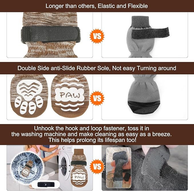 - Anti-slip: With a three-sided non-slip rubber sole, your pet's paws will have a good grip on the floor. For hardwood floors, if your baby's paws have a problem slipping on wood floors, we recommend you buy these socks with a anti-slip adhesive. Use non-slip socks to help heal foot wounds and prevent the dog from licking and further irritating the wound. ??Please note that we have a design patent to protective this exclusive design!