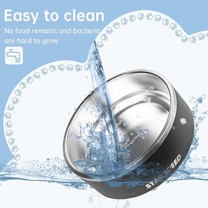 • 【Non-slip and No spill】 StarSpeed dog water bowls are weighted dog bowls with non-slip rubber rings. These designs prevent dog bowls from slipping and food and water spills. This feature is especially beneficial when using it as a dog food bowl or a large dog bowl